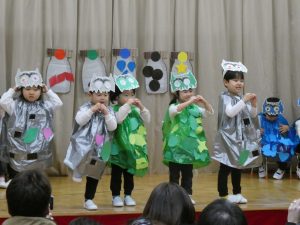 以上児は、合奏と劇に取り組み、劇では物語を通して友だちや命の大切さについて考えました。