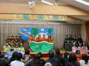 以上児は、合奏と劇に取り組み、劇では物語を通して友だちや命の大切さについて考えました。