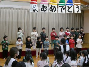 今日は子どもたちがとても楽しみに待っていたクリスマス誕生会がありました。