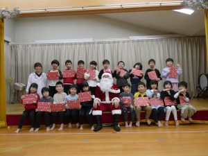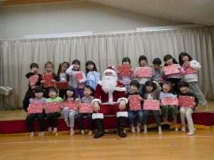 サンタクロースから子どもたち一人ひとりのお名前を呼んでもらい、プレゼントをもらって大切そうに胸に抱えていた子どもたちがとても可愛らしかったです。