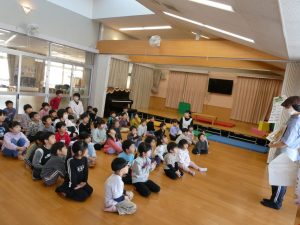 食育活動で栄養士の先生が、未満児クラス、以上児クラスに来て七草について簡単な説明をしてくれました。