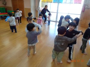 きりん組(2歳児クラス)の、リズム遊びの様子をご紹介します。