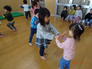 「なべなべそこぬけ」…昔からなじみのある曲で、皆さんご存じの通りの動きです。