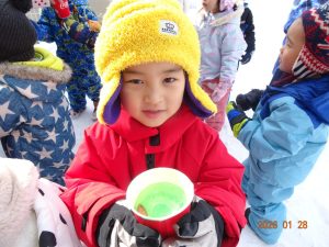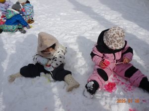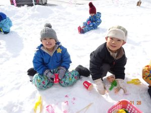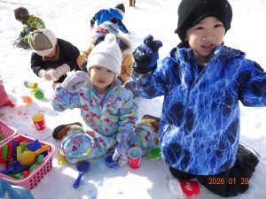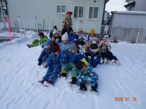 1月に入り、雪がたくさん積もったので広場でおもいきり体を動かして、雪遊びを楽しんでいます!