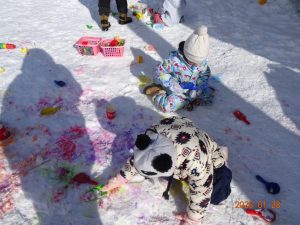 1月に入り、雪がたくさん積もったので広場でおもいきり体を動かして、雪遊びを楽しんでいます!
